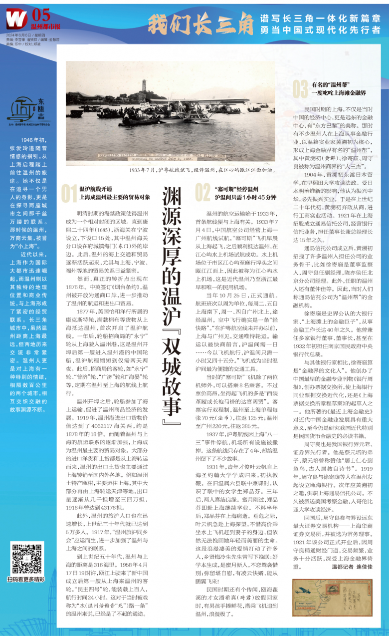 近代以来,上海作为国际大都市迅速崛起,而温州则以其独特的地理位置和商业传统,与上海形成了紧密的经贸联系。长三角城市中,虽然温州距离上海最远,但两地历来交流非常紧密。温州人更是对上海有一种特别的情结,相隔数百公里的两个城市,相互交织交融的故事渊源不断。