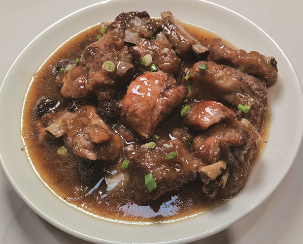 杨梅当季,“至真饭店”推出的“梅子排骨”最近成了食客的必点菜品。小排鲜嫩多汁,几颗深色杨梅干点缀其间,这道菜,色泽温润不油,勾起了记者的食欲,大块入嘴,肉厚、滑嫩,还带有几分杨梅酸甜。“梅子排骨是我们的大厨根据时令推出的,”主理人徐智敏说,“子排腌制过油放进高压锅加杨梅干,放调味品,高压6分钟出锅撒上葱花即可。”