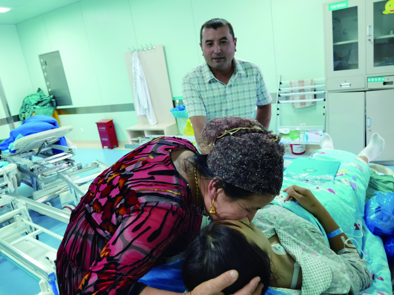 15岁的维吾尔族少女小布(化名),患有双手并指、多拇畸形。这次,田文给她做了左手多拇畸形时,重塑漂亮大拇指。当小布被推出手术室,她的母亲激动地亲吻女儿的脸额。
