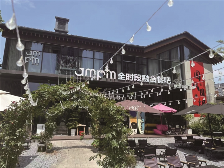 走进“AMPM全时段融合餐吧”,小院里植被、草地、碎石、小径、账篷、沙滩椅错落分布,层次感分明,围炉煮茶的年轻人在其中打发着闲暇时光;二楼茶几上摆放着很有氛围感的摆件,各色植物点缀在桌椅间,几位年轻女子倚靠着松软的靠背,轻声细语地聊着天,不时来上一口咖啡或品尝欧包点心,还时而起身为彼此定格美好瞬间。“我是90后,我的闺蜜是00后,我们很喜欢这里的装修风格,时常来打卡拍照,还有西餐咖啡也很合我们胃口。”90后小王说。