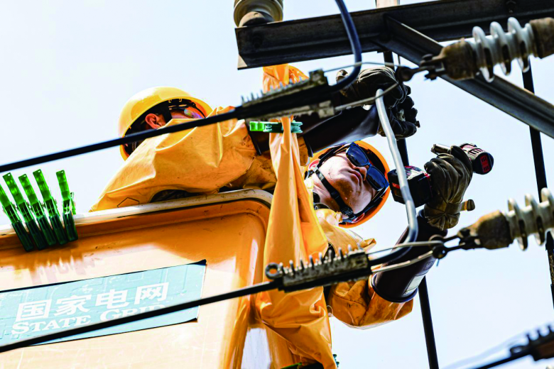 获得作业许可后,全副武装的带电作业人员身着厚重的绝缘服,登上晒得滚烫的斗臂车,对三相导线进行绝缘遮蔽、拆除高压引线等工作。随后,老旧变压器拆除、新变压器吊装等作业也在有条不紊地进行着。施工现场,体感温度直逼40℃,汗水将施工人员的灰色工作服彻底浸湿。