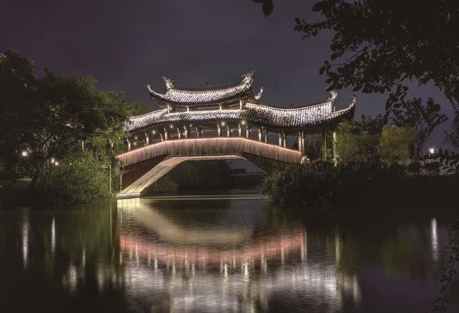 夜晚是梦的倒影,暮色四合送走绚烂的晚霞,星星点点与水袖般的月光,在天幕铺展开一幅长卷,三垟湿地的风景沐浴在夜色与晚风里,每一步都是无笔自成的诗。