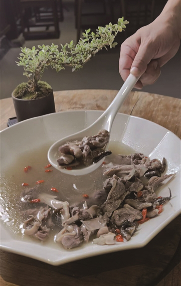瓯海新桥街道办事处门口的富新路不知什么时候已经向东连通过境路,办事处以东的塘河绿地上坐落着一座叫“榕阁”的口字型古建,飞檐斗拱、画栋雕梁、纯色古漆,院内中式布局颇有地方特色,门前植被繁茂,沿河栏杆等设置古朴,这里竟有记忆中的新桥不曾有的迷人景致。今天“拿手菜”栏目走进瓯海新桥“榕阁”,聆听一位从大山里出来的汉子对养生美食的见解。