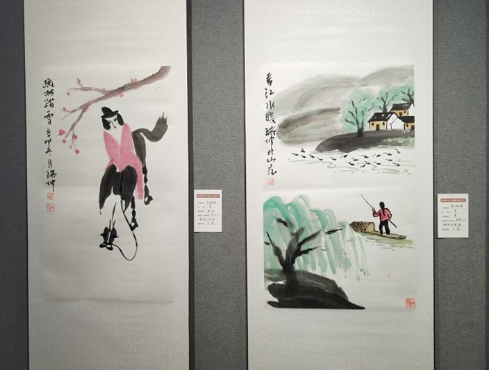 本次展览正值温州知青园开园5周年之际,自今年3月初启动以来,得到了广大知青的关注与支持,不少知青书画爱好者来电咨询、商讨展出事宜,市区、乐清、瑞安、平阳、苍南等地的93位作者积极应征,共投送参展作品147件,最终入展108件(其中书法70件,绘画35件,印屏3件)。这些作品内容丰富,形式多样,书法作品篆隶真行草五体皆备,绘画作品以国画为主,人物、山水、花鸟等品种齐全,其中不乏精品佳作,观者一饱眼福。