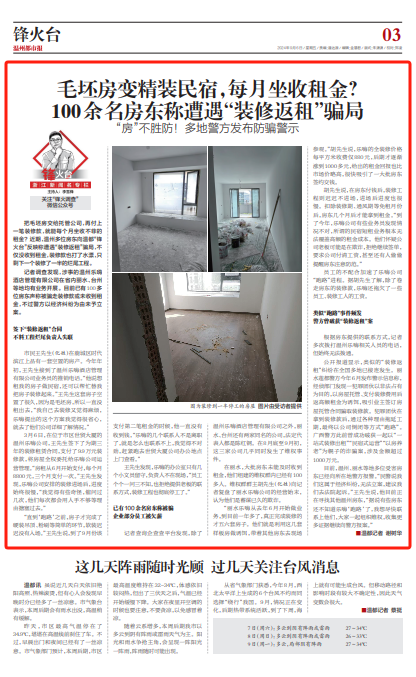 记者调查发现,涉事的温州乐嗨酒店管理有限公司在省内丽水、台州等地均有业务开展。目前已有100多位房东声称被骗走装修款或未收到租金,不过警方以经济纠纷为由未予立案。