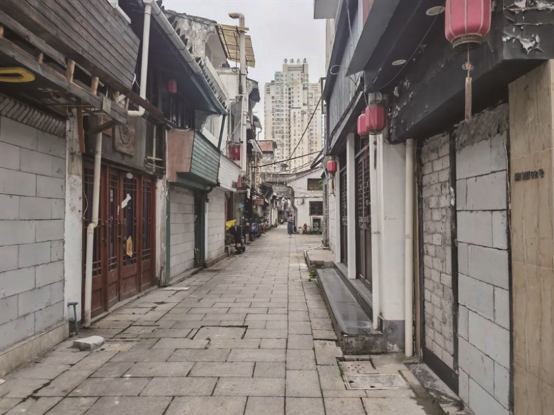 这里曾是温州著名的商圈,如今繁华褪去,取而代之的是一片宁静,仅有两三位老人悠闲地交谈着。