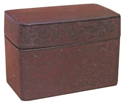 南宋戗金柳塘图朱漆斑纹长方形黑漆盒