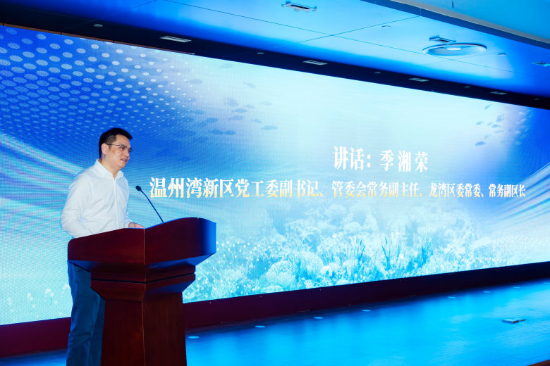 活动最后,季湘荣、陈卫辉、徐伟敏,区委组织部、区经信局、区投促局、区审批局、星海街道主要负责人、浙江东方职业技术学院产学研工作有关负责人以及签约企业代表等10位嘉宾共同上台启动,见证海洋生物健康产业基地打造的正式开启,标志着一个充满机遇与挑战的新征程拉开帷幕,将成为温州海洋经济发展的新引擎,为推动区域经济高质量发展做出积极贡献。