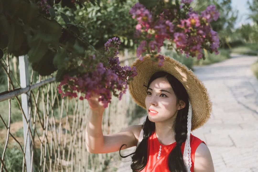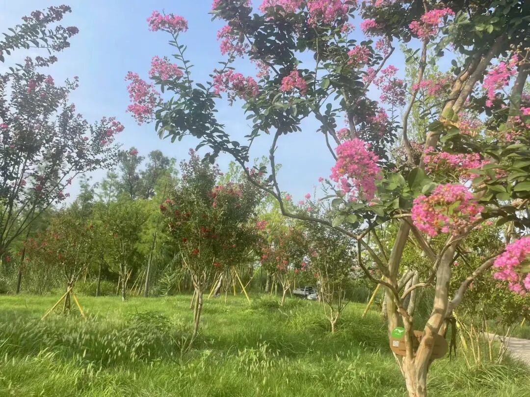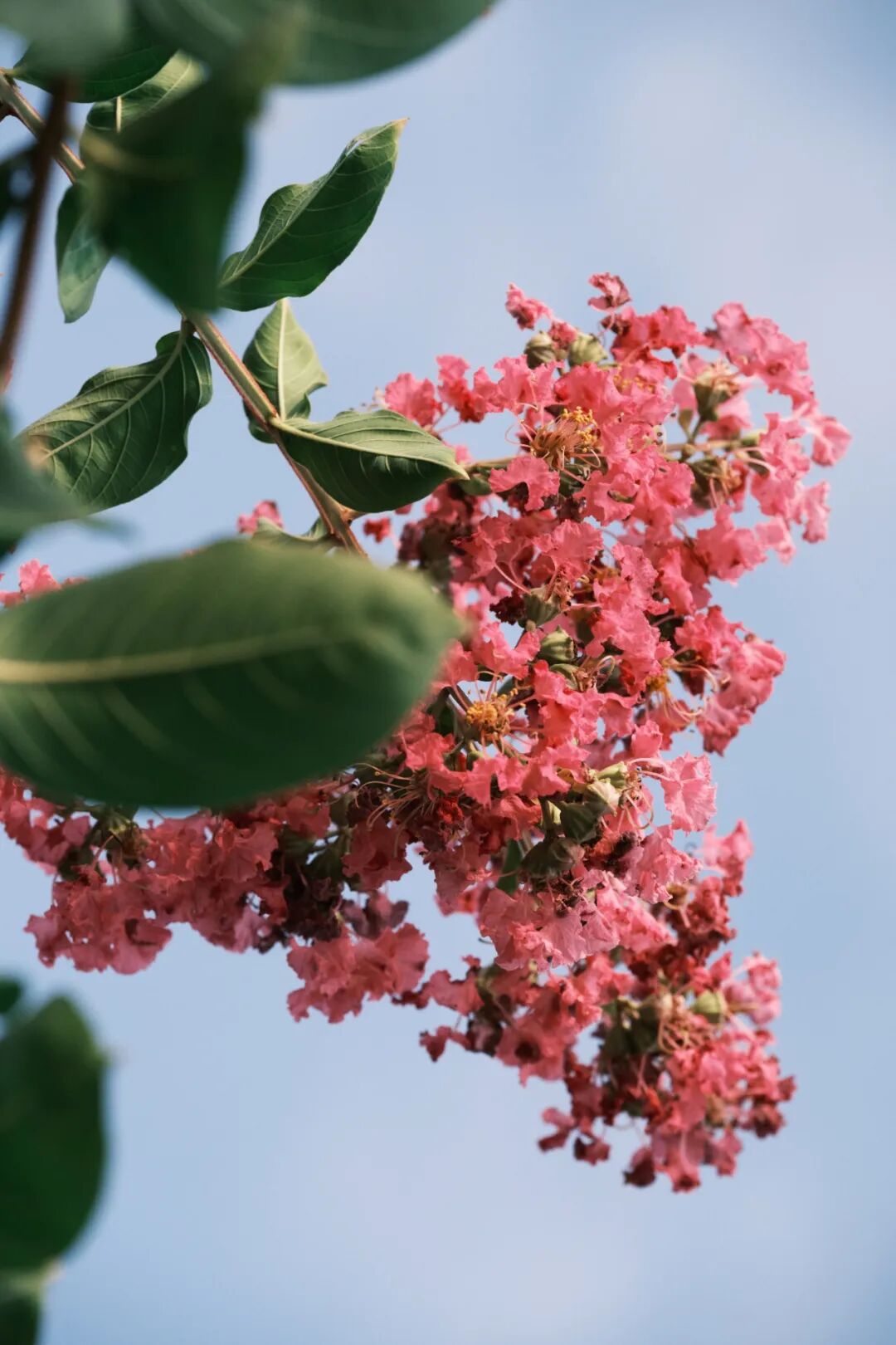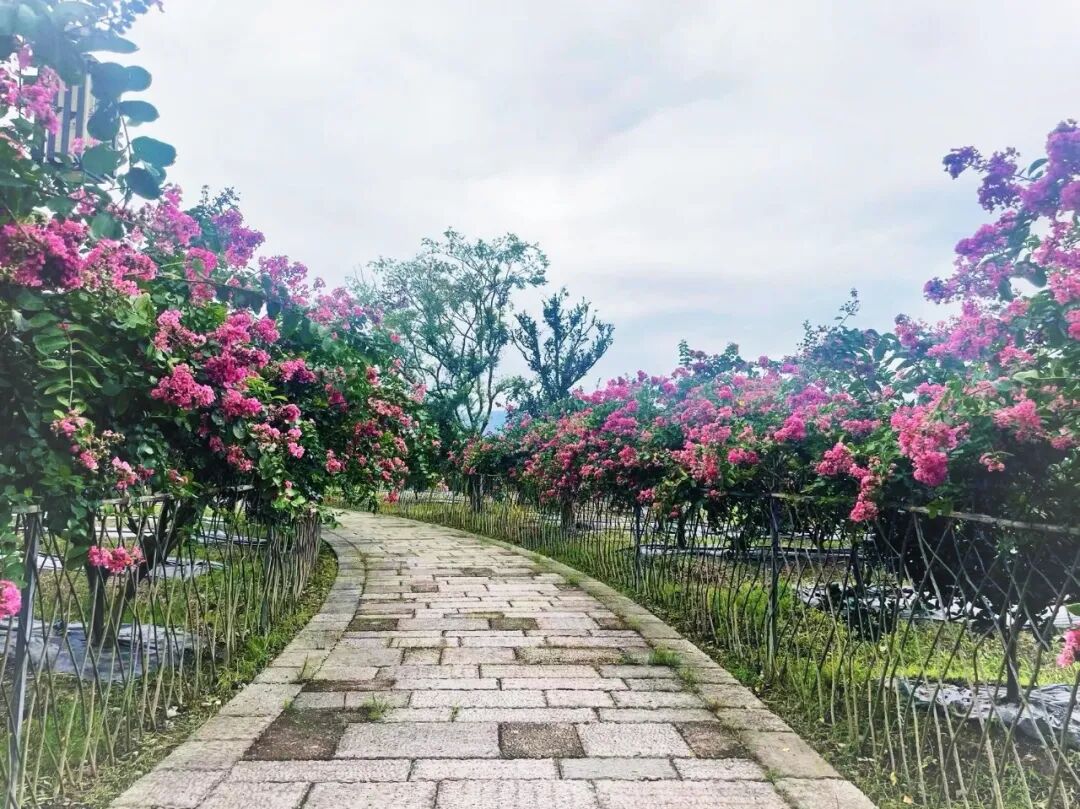 沿着用紫薇树干做的篱笆墙,漫步花海之中,欣赏初秋最美的自然风光。紫薇花不似玫瑰那般妖娆,也不像牡丹那样张扬,每一朵紫薇花都像是小小的世界、细致而充满生机。在阳光的照耀下,紫薇花显得更加娇艳欲滴,那淡淡的粉色、红色,仿佛是这个初秋最梦幻的色彩,让人沉醉其中。