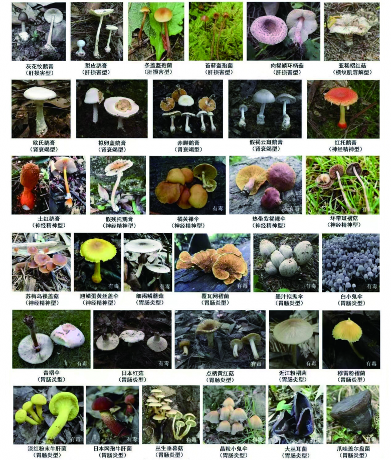 野生蘑菇种类繁多,目前研究发现的有毒蘑菇有400多种,浙江常见的毒蘑菇有白鹅膏菌、麟柄白毒伞、褐鳞伞、褐鳞小伞、铅绿褶菌等,许多品种外观相似,肉眼鉴别有毒和可食用品种非常困难。