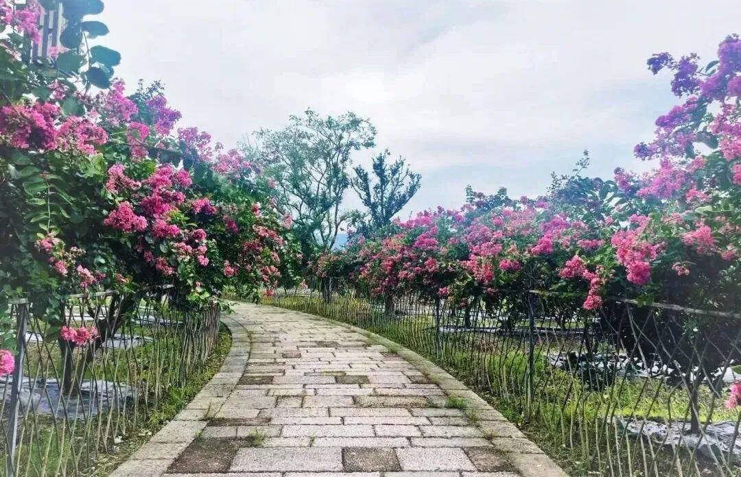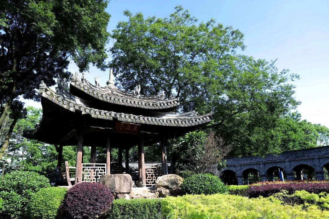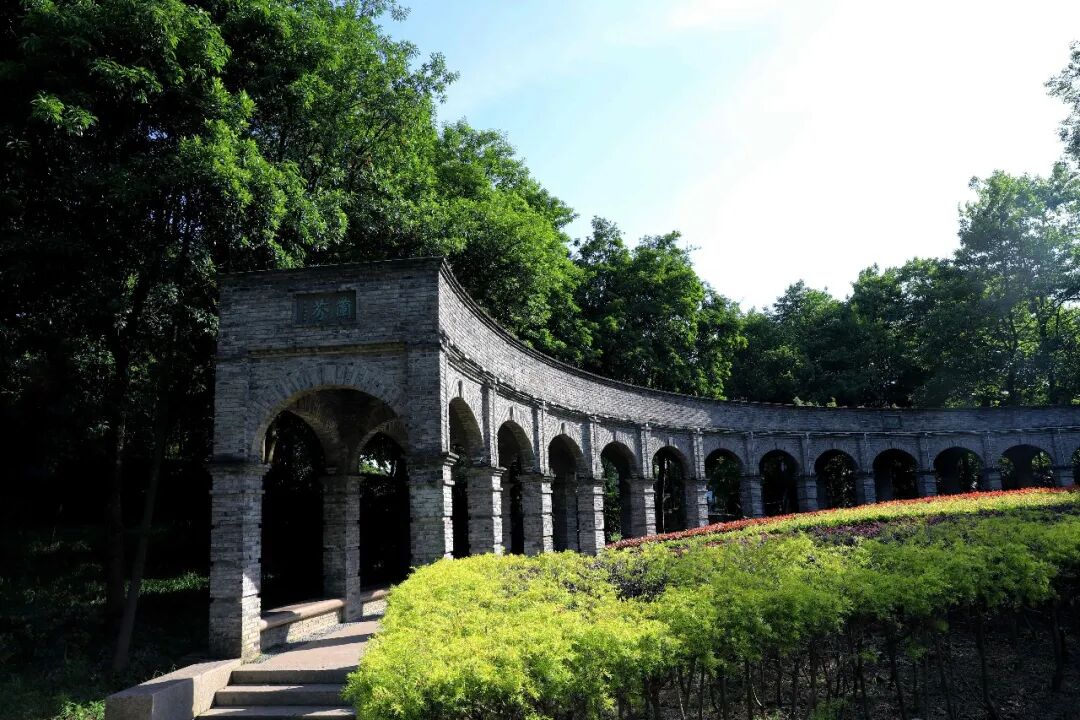 丽花亭的古韵建筑,仿若梦回宋朝,是体验古风魅力的绝美打卡地。双层飞檐和亭内华丽藻井令人称叹,漫步中西合璧的券拱砖廊,周围映衬着黄黄绿绿又十分茂盛的叶丛,甚是美丽。