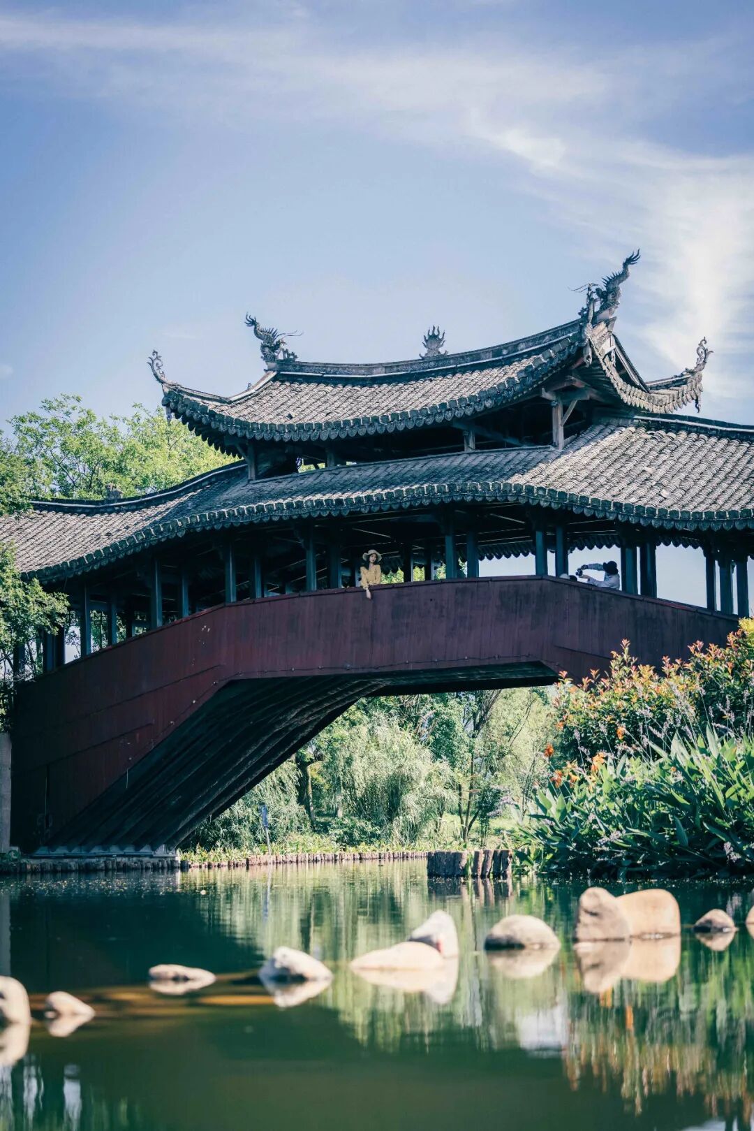 五福园内还有泰顺同款廊桥“琼华廊桥”、可以实现躺平自由的三可草坪、沐浴红色文化的榕树园、古色古香的濯龙居......栖息心灵于此,沉醉于偏安一隅的清宁。