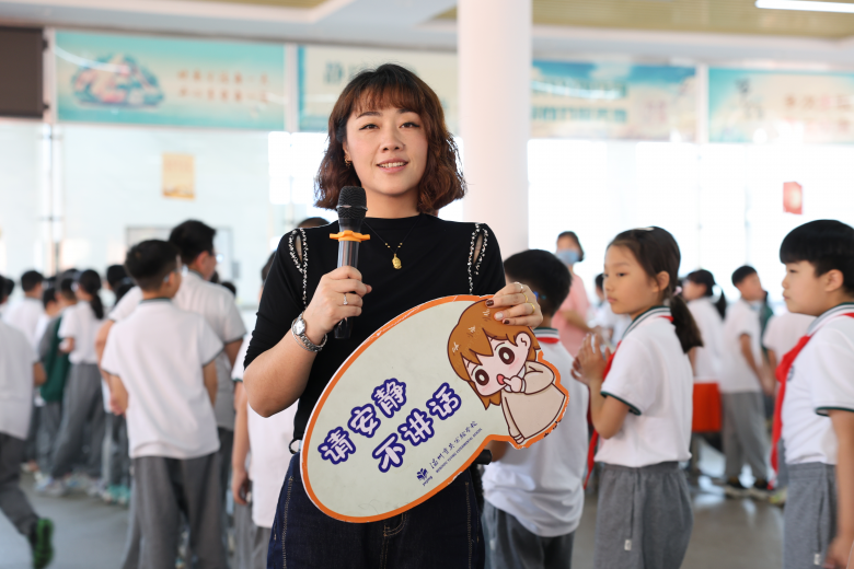 幼儿教师的技能在这里派上了用场,学校的大课间项目更热闹也更丰富了。她们带着学生们来到操场玩彩虹伞、转呼啦圈、带动跳。生活老师李晟说:“学生们可能感觉回到了幼儿园的时候,都在操场上蹦啊跳啊,玩的积极性更高了。大课间下来大家的脸都是红扑扑的,这样锻炼的效果就达到了。”