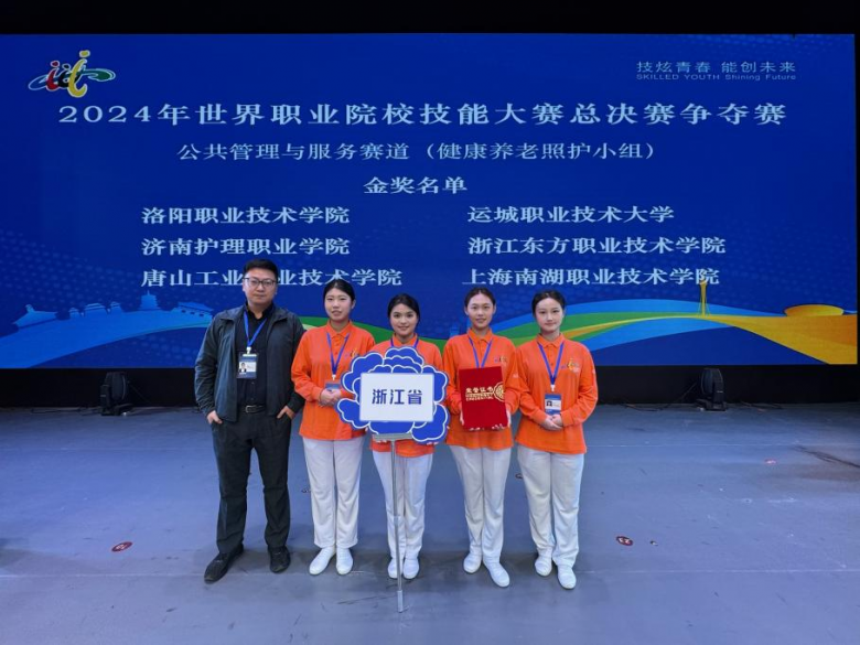 10月30日至11月1日,2024年世界职业院校技能大赛总决赛争夺赛公共管理与服务赛道“健康养老照护”赛项在洛阳职业技术学院隆重举行。浙江东方职院智慧康养学院代表队勇夺金奖,成功实现了我市高职院校在该项目金奖零的突破。