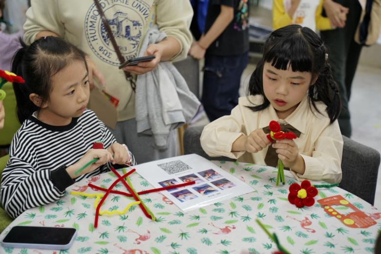 市集集合了美食、自行车展示、城市文创等多种元素,将阅读与旅行完美融合。孩子们在品味美食的同时,还能通过游戏了解各地地标建筑、地方文化特色。在“人文智趣小搜索”摊位前,孩子们通过游戏感受着家乡的变迁与发展;在“城市文创奇趣园”摊位上,各种以地方特色、温州市图书馆为主题的文创产品琳琅满目,让孩子们在欣赏的同时,加深了对家乡文化的了解和认同。