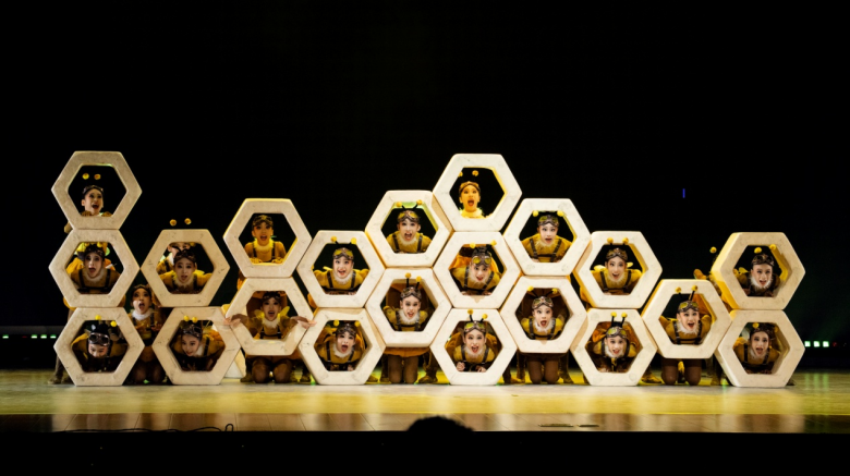 当晚,全国共有两支少儿群舞参演,其中由乐清市育英寄宿学校的小舞者们精彩上演的舞蹈作品《我们的家》,创作灵感来源于孩子们的动画片勤劳的蜜蜂,用现代舞蹈手法创作全新的时尚的小蜜蜂形象。“小蜜蜂”的家由固定的一个个小蜂巢变为一组一组的小蜂巢,最后成一个大蜂巢,“我们的家”也就建好了。该作品模拟蜂巢,描绘了一幅小蜜蜂们忙碌着搭建自己心中最美蜂巢的画面。舞蹈以小蜜蜂喻人,表达出当下勤劳的人民对建设自己美好家园的愿景。