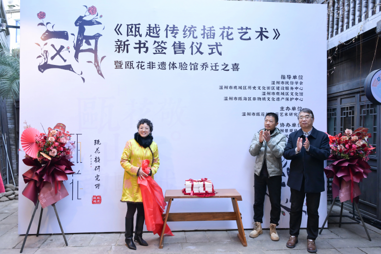 温都讯 1月10日,温州第一本关于插花的系统书籍《瓯越传统插花艺术》在市区公园路瓯花非遗馆首发。