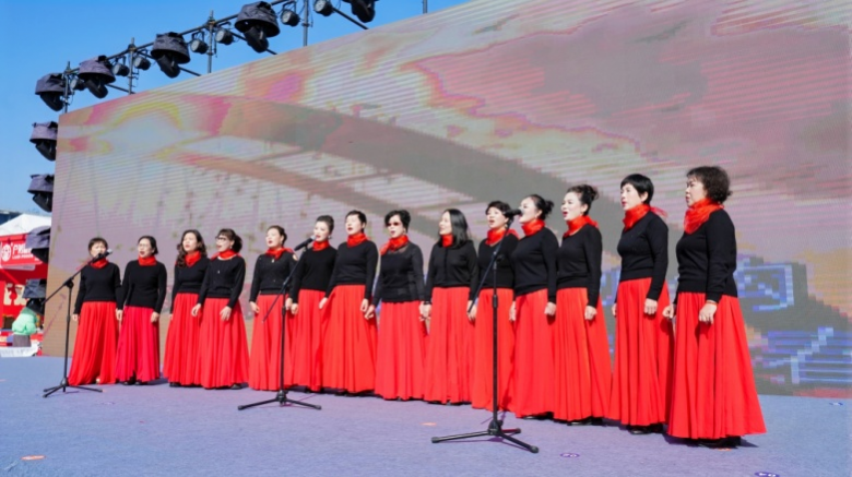 在开幕式的精彩暖场表演环节中,声乐初级1班的方玉萍、项有国等17位同学们以一曲激昂的《天南地北唱中华》赢得了现场观众的热烈掌声和高度赞誉。