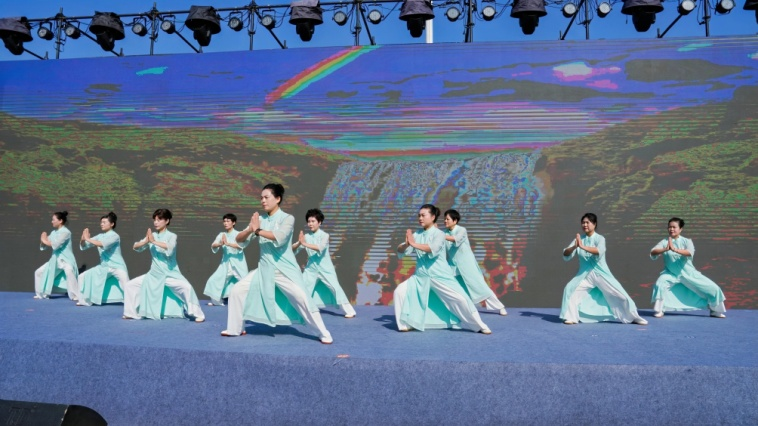 此外,精彩的太极表演也成为了舞台上的一大亮点。表演者们身着传统服饰,气定神闲,在舒缓的音乐节奏中,缓缓展开动作。他们的动作圆活连贯,如长江大河,滔滔不绝,展现出太极的独特魅力,也体现了老年大学学员们良好的精神风貌和健康的生活状态。