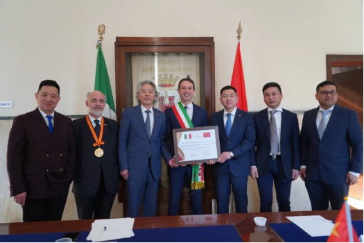 中国传统的新春佳节即将到来,意大利华侨华人也沉浸在喜悦之中。2025年1月24日上午,意大利塞斯托圣乔万尼市与温州鹿城区友好关系十周年纪念活动在塞斯托圣乔万尼市政府举行。米兰温州商会胡志建会长一行应邀出席,并获颁“意中友好使者”荣誉证书。