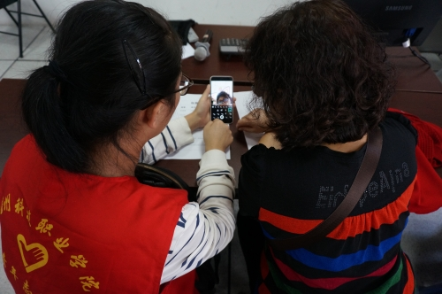 老年微课堂是该中心长期开设的一项公益培训活动。该中心联合温州科技职业学院、浙江工贸职业技术学院等高校,组织专业、规范的大学生志愿者,每周三、周五下午为老年人提供优质、便捷的教学服务,“一对一,手把手”免费教老年人用手机、学电脑,让老年人老有所学、老有所乐、老有所为。