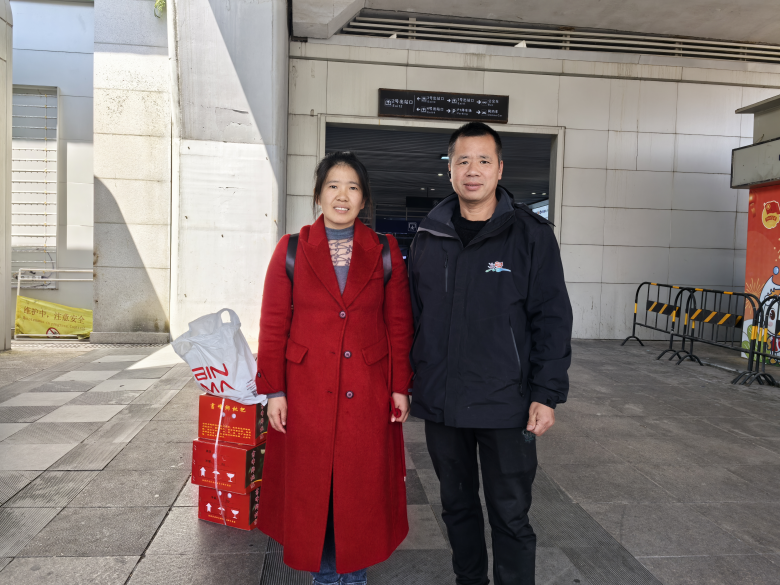 在出站口,宝贝回家志愿者潘先生早已等候多时。来自平阳万全的他和娟子在短视频平台上相识,当知道娟子要到瑞安寻亲,便主动表示可以提供帮助。