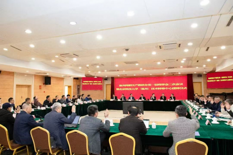 3月21日,温州湾新区产教联合体一届理事会二次会议暨北京科技大学(温州)技术转移中心授牌仪式在龙湾区行政管理中心举行。30家联合体理事会成员单位代表汇聚一堂,共同探讨推进教科人一体化建设,服务湾区高质量发展。