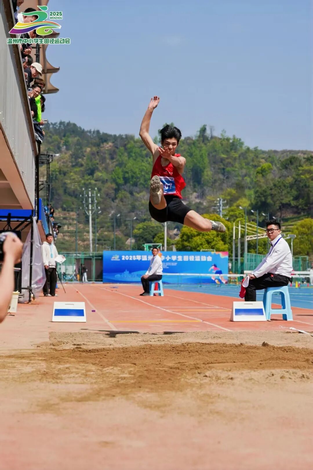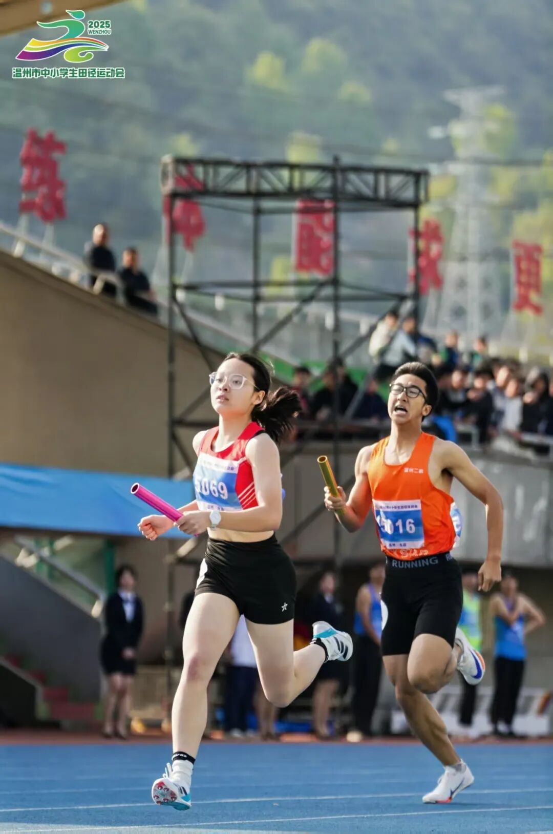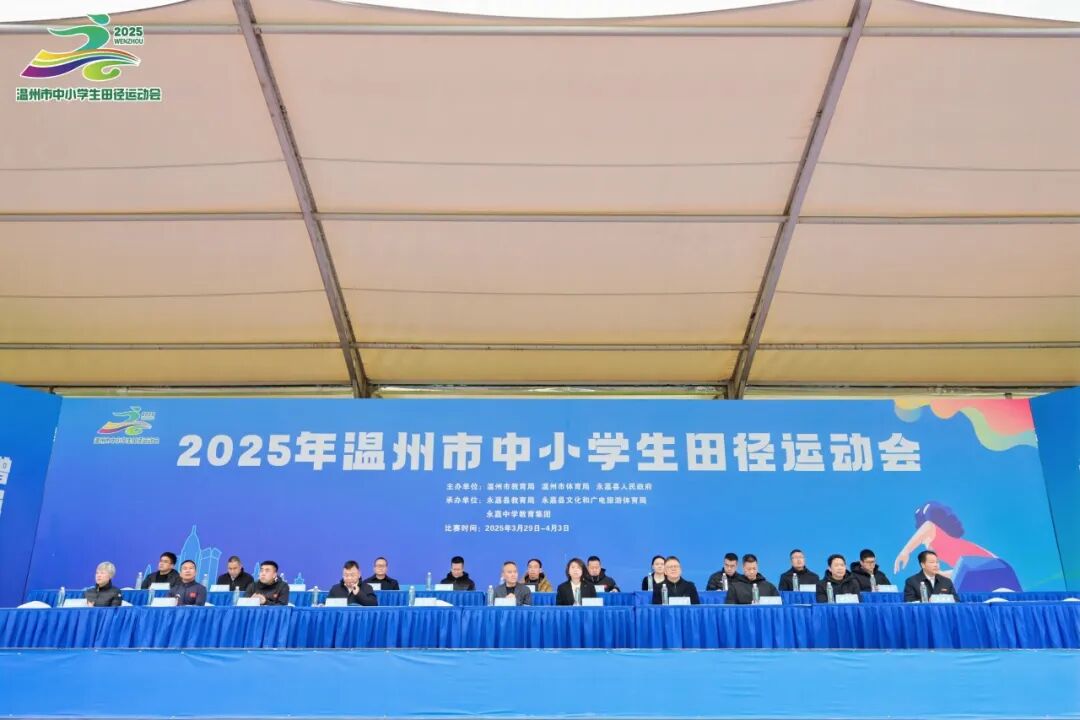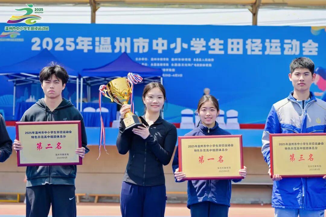 近日,历时5天的2025年温州市中小学生田径运动会在永嘉中学胜利闭幕。本次运动会共有13个代表团、159支学校代表队、2434名运动员和教练员参赛,67人次打破30项赛会纪录(其中中学组14项,小学组16项)。市教育局党委委员、副局长吴君宏到场看望运动员。