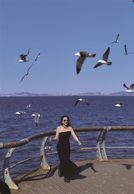 清晨出站后,毛叔搭乘首班有轨电车前往星海广场——这个亚洲最大城市广场,也是观赏日出的绝佳地点。沿着海岸线漫步,海风与鸥鸣相伴。原以为喂海鸥需到指定区域,实则整条海岸线随处可见盘旋的海鸥。需要注意的是,星海广场面积广阔,而大连没有共享单车,出行全靠步行或打车。