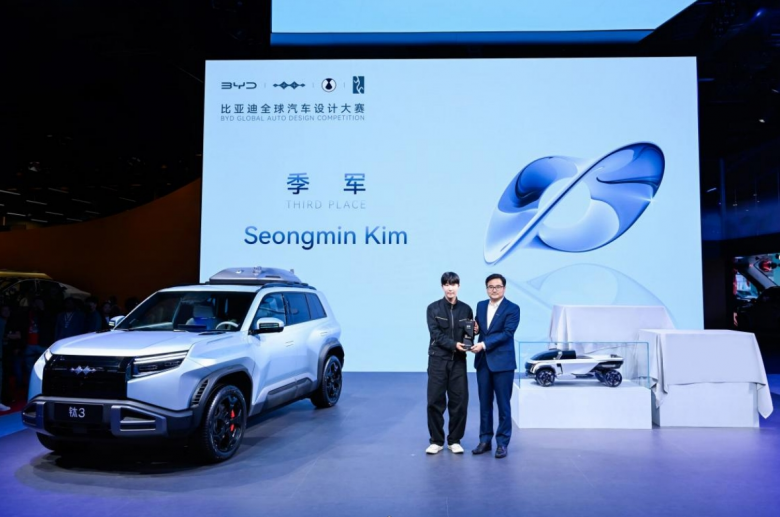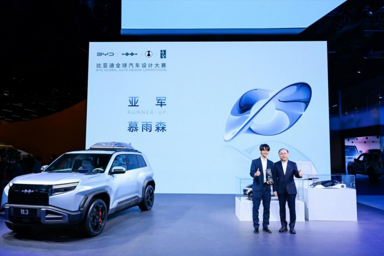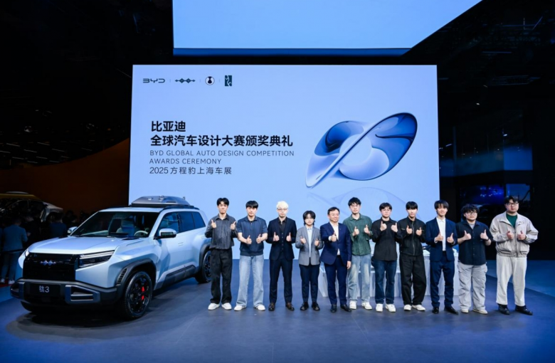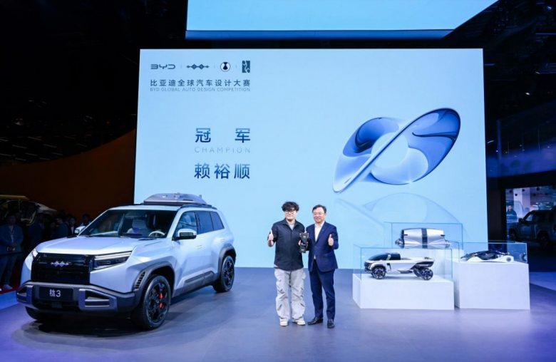 2025年4月23日,一场极具艺术气息的设计大赛颁奖典礼在上海国际车展方程豹展区举办。比亚迪王传福总裁与来自清华大学美术学院、中央美术学院等五大顶级艺术院校的专家评委亲临颁奖典礼现场,并为来自天津美术学院的冠军选手赖裕顺颁奖。