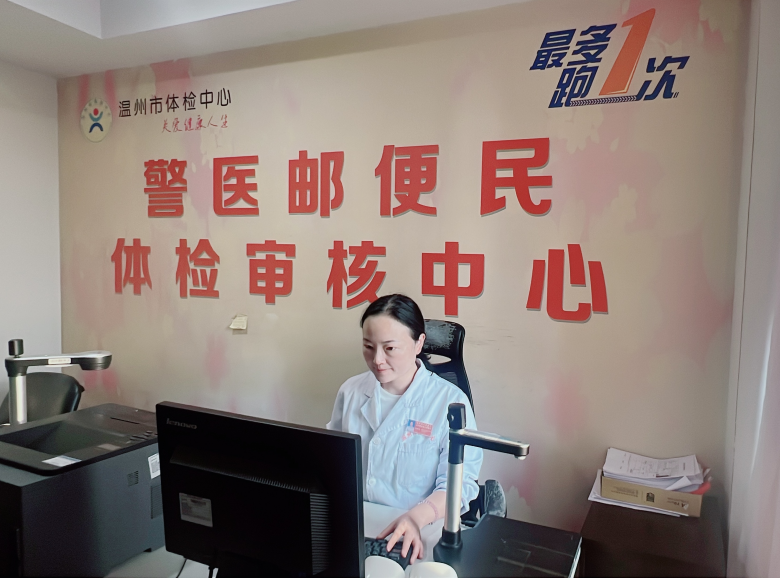 温州市体检中心主任水旭娟介绍,早在2018年1月,温州市公安局交警支队车管所联合温州市邮政公司和温州市体检中心,三方推出了“警医邮”服务。驾驶证到期换证的市民,可以就近前往“警医邮”网点的邮政所,办理申请及驾驶员体检项目。体检中心工作人员通过远程审核,上传后由车管所后台人员审核并受理制证,最后由邮政人员送证上门。