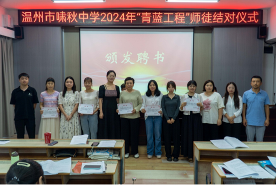 啸秋中学2024年“青蓝接力”师徒结对仪式。