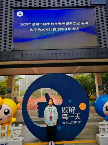 在4月12日,在温州市府路小学举行的2025年温州市师生数字素养提升实践活动数字艺术与计算思维现场测试,各县(市、区)及市直属学校共106名优秀学子从前期作品选拔赛中脱颖而出,参与本次现场测试。全市小学创意编程组共10人参加,争夺省赛入场券,贺紫萱是永嘉在该项目的唯一代表。