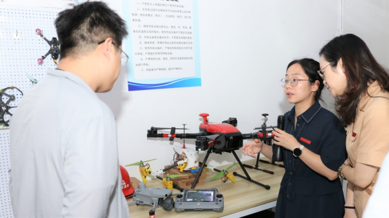 在无人机实训室,记者得知该实训基地形成了制造装配、运维检修、安全巡查、应急救援、资源监测、农林植保、测绘遥感、航拍摄影等多个技术领域的教学、科研、实训、服务能力,并承担了省、市应急、公安、消防、城管、退伍军人等部门和电力、农业、林业、国土等行业的无人机人才培训任务。