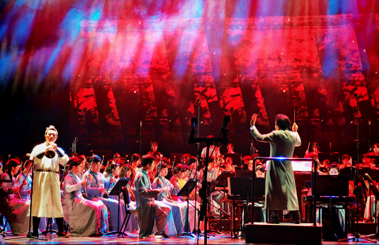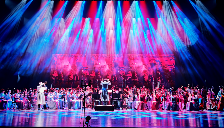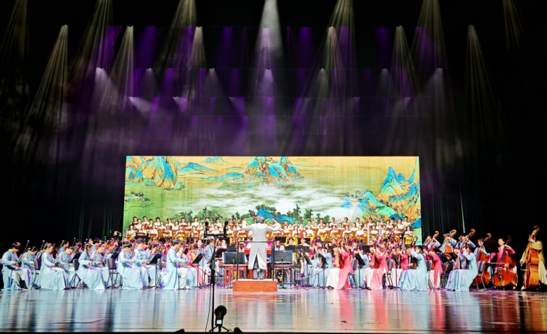 作品匠心独运,如同一幅徐徐展开的宋代立体长卷。八个精心创作的乐章——《宋韵·锦绣》《初发芙蓉》《烟火人间》《赤壁怀古》《精忠铁骨》《瓷色》《听琴》《宋韵瓯风》——以宏大的民族管弦乐为基底,将宋画的细腻意境、宋词的豪放风骨、名将岳飞的忠勇传奇、精美绝伦的宋瓷艺术等丰富的宋韵文化意象娓娓道来。