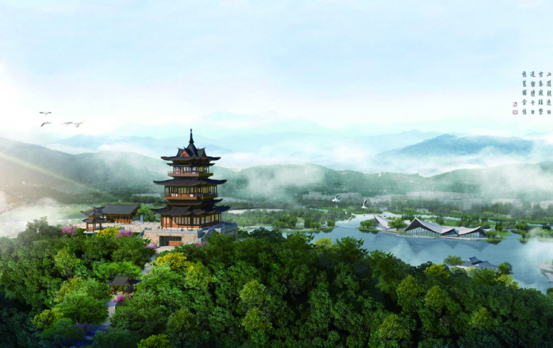 作为园博园北园制高点,郭公阁与北园主展馆山水中国馆遥相呼应,是“一阁、一堂、两馆、十二景”景观序列中的重要节点,也是打造观城望山之点的文化地标建筑。