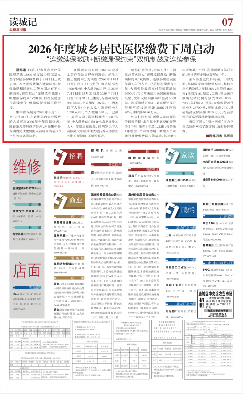 ▲《温州都市报》2025年8月28日07版