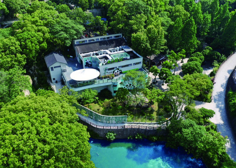 大熊猫馆周围种植了竹子,绿意环绕增添凉意,馆舍有两层,“宝弟”住楼下,“宝妹”住楼上,各自独享150多平方米的“大平层”。室外有300多平方米的“游乐场”,装点了假山、竹林等。现在暑气未消,它们都待在房里吹空调,馆内装有新风系统,室温保持在22℃至24℃。