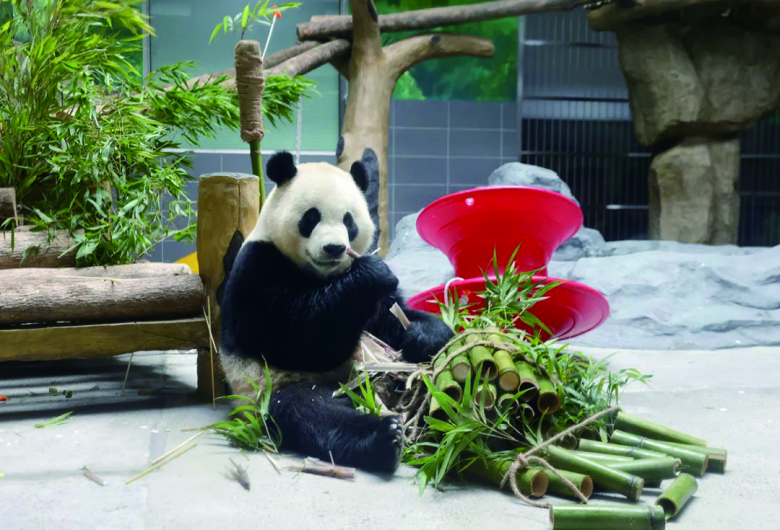 “一开始怕它们在温州吃得不适应,竹子都是选用四川直供,后来逐步转为温州本地盛产的箭竹、毛竹等,相当于从‘四川味’慢慢调整为‘温州味’,它们已经爱上这一口。”当记者还在惊奇竹子也有地方口味之分时,小朱已经准备好几根竹竿,准备摔竹子了,这是饲养员的日常工作之一。
