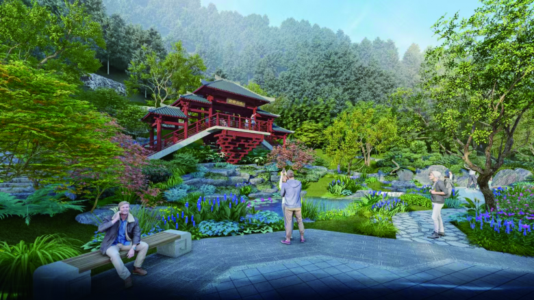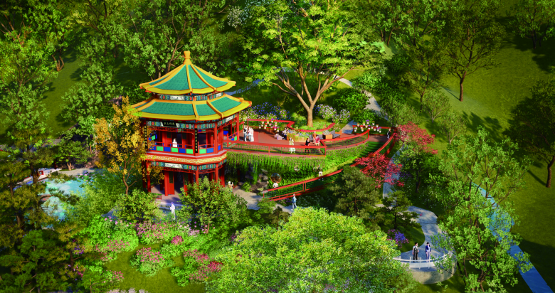 设计师建造北京园时,将从新时代百姓生活中汲取灵感,塑造两地文化互动。造园时保留原有大树,延续古樟乡愁,传承本土文化,同时融入北京古树名木保护的故事,结合两地市花的运用,展现首都花园城市建设场景和生态文明建设成果,体现首都时代风貌和宜居之都的魅力。