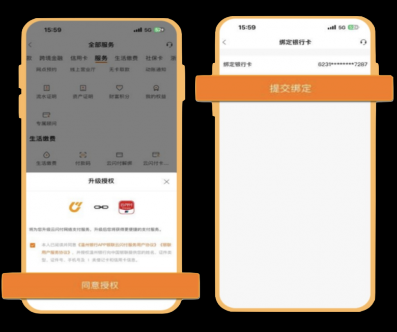 ② 首次开通时,需进入“云网支付服务授权界面”点击“同意授权”,并绑定银行卡。