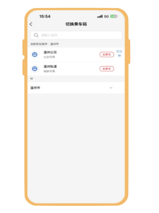 ② 选择“温州轨道”,点击“去乘车”。