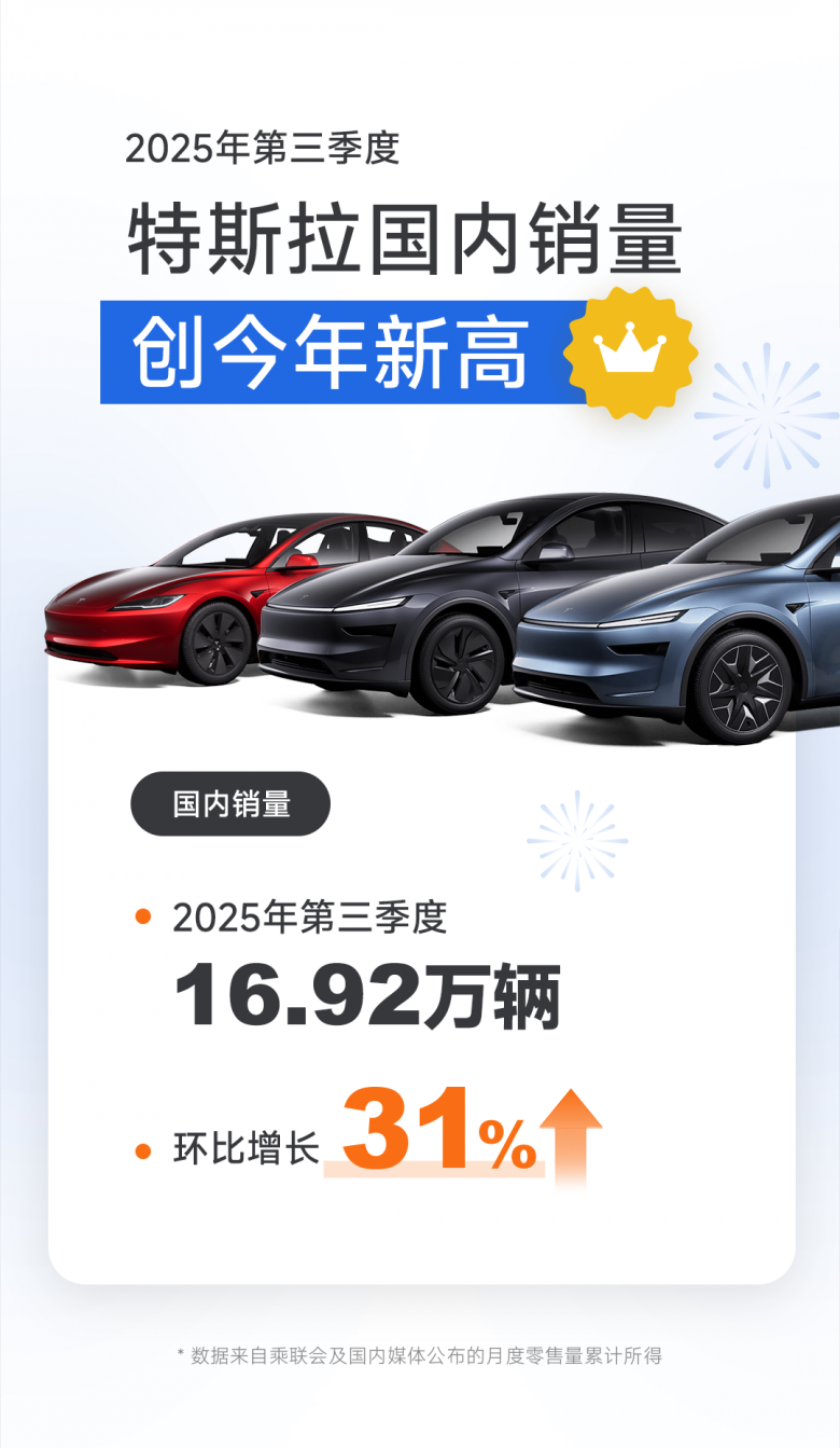 2025年第三季度,特斯拉在全球多个核心市场延续统治力。据相关数据显示,特斯拉中国国内9月销量7.1万辆,环比增长25%,Model Y为SUV销量第一名;3季度销量近17万辆,环比增长31%;同时,特斯拉在亚太多个市场8月销量成绩也已经出炉,特斯拉继续领跑各地进口车销量榜。