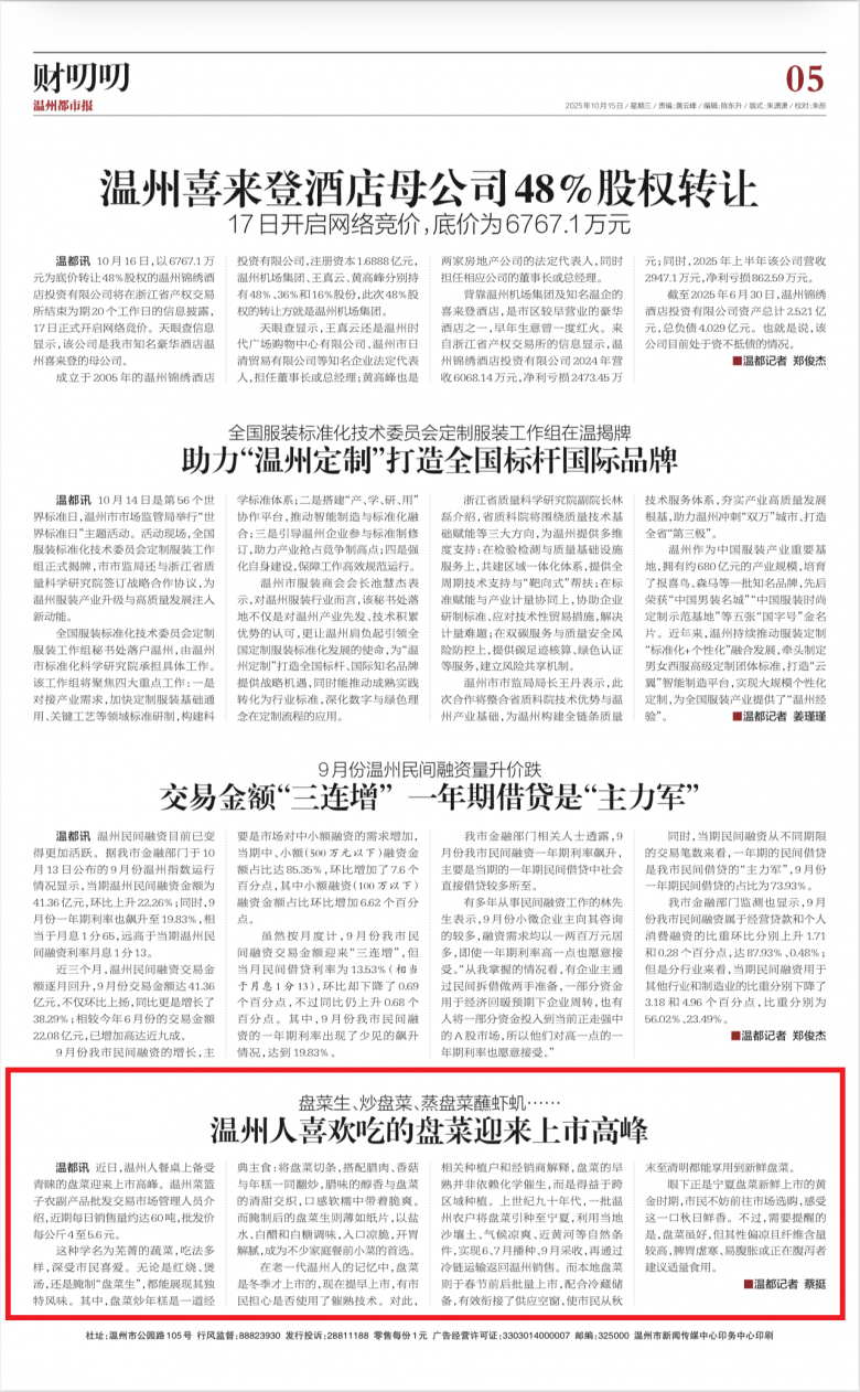▲《温州都市报》2025年10月15日05版