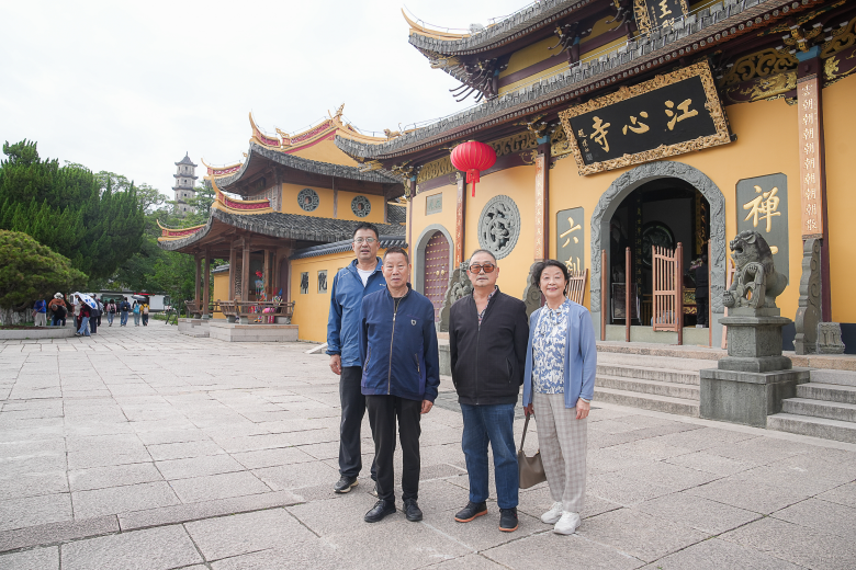 在这座承载着无数温州人记忆的江心寺前,四位分别30余年的故人终于重逢。从甘肃平凉远道而来的孙志钢、张冬兰夫妇和陈国治,与原温州市市中印刷厂负责人陈志敏相视而笑,岁月的痕迹刻在脸上,眼底的光芒却一如当年。