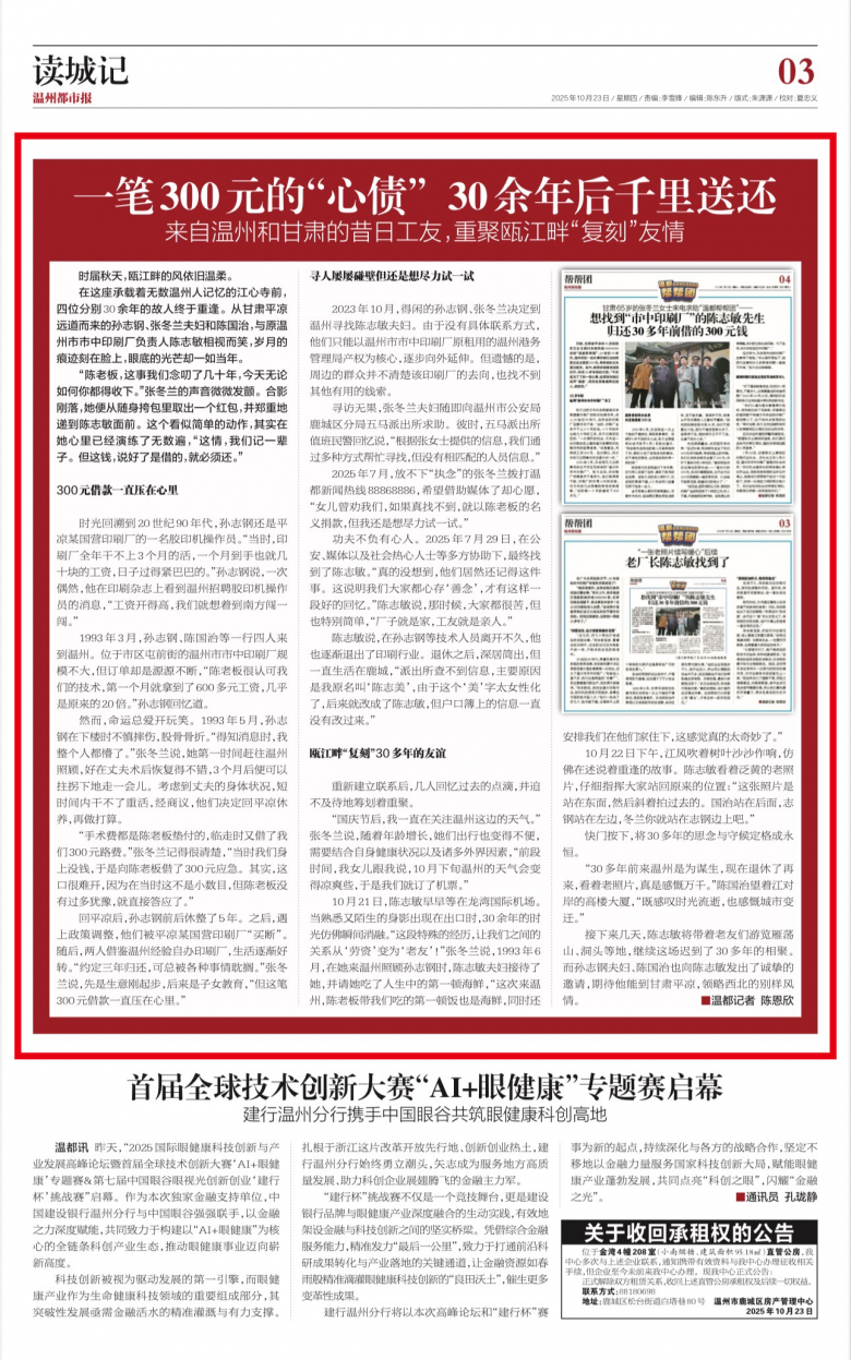 2025年7月,放不下“执念”的张冬兰拨打温都新闻热线88868886,希望借助媒体了却心愿,“女儿曾劝我们,如果真找不到,就以陈老板的名义捐款,但我还是想尽力试一试。”