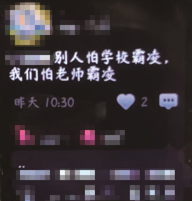有家长说,孩子毕竟身心尚未成熟,在校期间渴望老师的关心和爱护,老师是他们唯一的依靠,如果这个“依靠”不可靠,势必对孩子的成长带来负面影响。