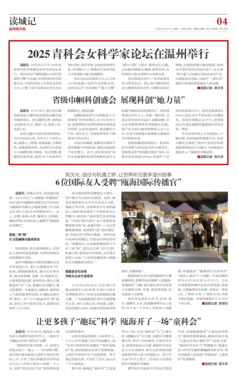 温都讯 10月25日下午,2025世界青年科学家峰会女科学家论坛举行。本次论坛以“她智创新:AI时代的韧性引擎”为主题,由世界青年科学家联合会、中国女科技工作者协会共同主办,汇聚了来自全球260余位杰出女科学家、青年学者、企业家及各界代表,共同探讨人工智能时代女性科技人才的创新力量与发展路径。