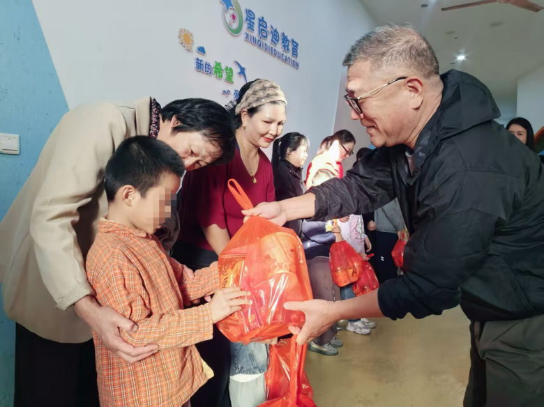 当天下午,市慈善总会副会长王绍寅、秘书长李武、募捐部主任夏拓,山西平顺客都商贸有限公司经理陈婵婵,志愿者汤华华等参与献爱心活动。一行人参观了学校,了解办学情况,将一袋袋爱心礼包送到师生手中。王绍寅说,市慈善总会很关心“星星的孩子”,今后会继续为孤独症孩子多办实事。
