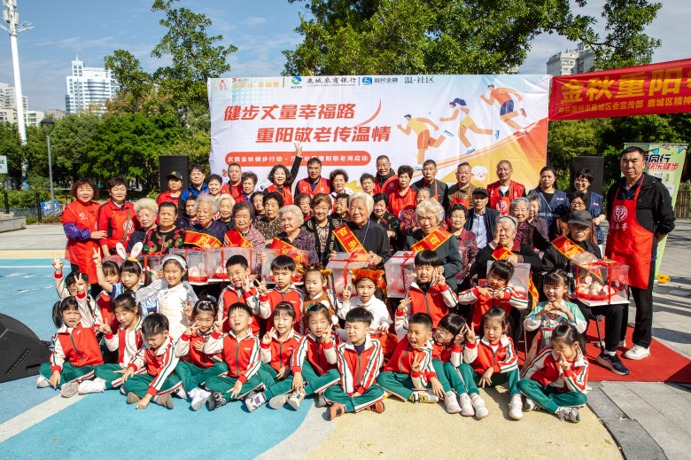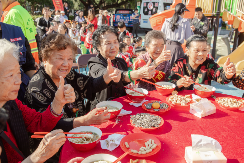 重阳敬老是本次活动的核心环节。现场,中共温州市鹿城区委宣传部献上经典寿戏,让老戏迷们过足戏瘾;温州三乐亭志愿者为长者们烹煮暖心长寿面,还为80岁以上老人送上象征福寿的寿桃,尊老之情溢于言表。文艺表演环节更是精彩纷呈,高潮迭起。温州市第四幼儿园上田园区小朋友的童真表演,则为现场注入了蓬勃朝气,生动勾勒出“老青少”三代共融的温馨画面。游园与便民服务区同样人气十足。南银法巴消费金融有限公司准备了趣味游戏与精美礼品;绣山卫生院、“红剪刀”义工队及一周经络推拿的志愿者们,则联手为居民提供了免费的量血压、理发和按摩服务。活动现场万源志愿队、在职党员志愿队的志愿者们忙碌的身影,他们以饱满的热情和专业的服务,成为了“温·社区”理念最生动的诠释者。这些“小而实”的便民举措,精准对接居民日常需求,让“温·社区”的温情服务真正触手可及。